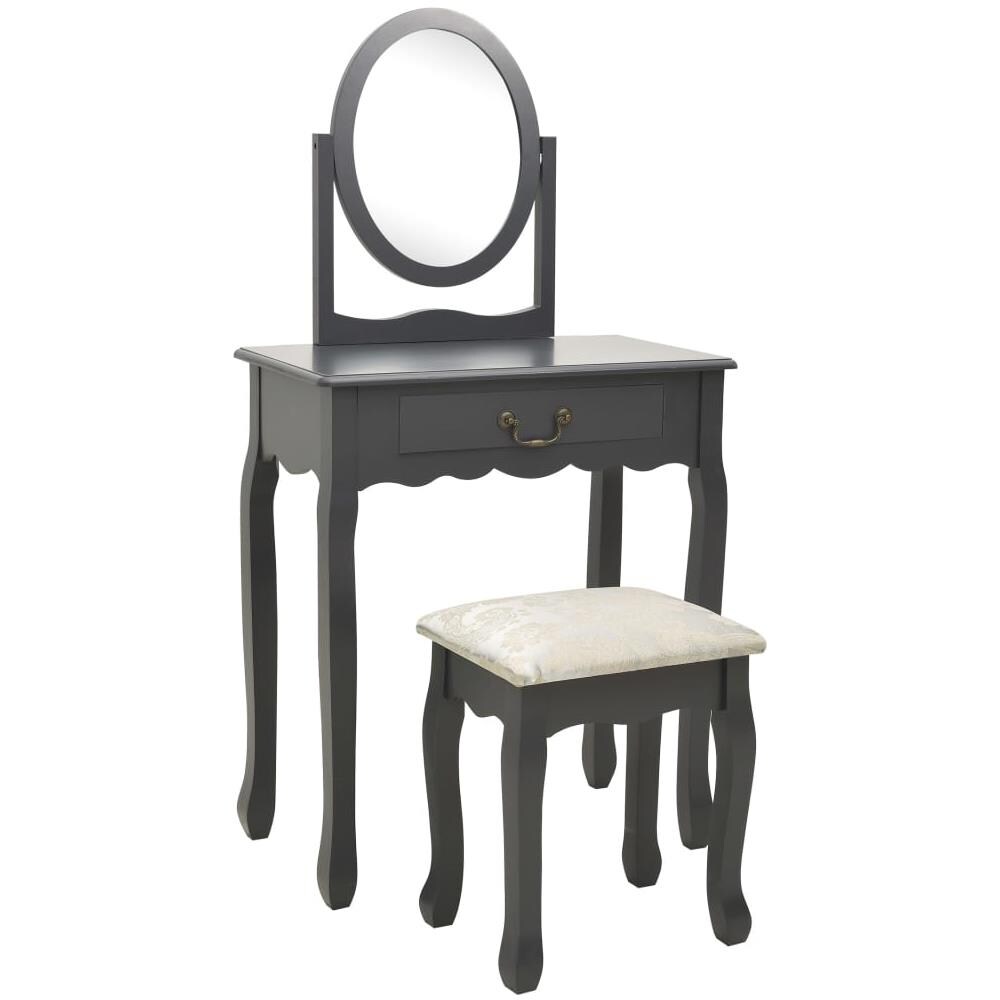 Tavolo Da Trucco E Sgabello Grigio 65x36x128 Cm Paulownia E Mdf
