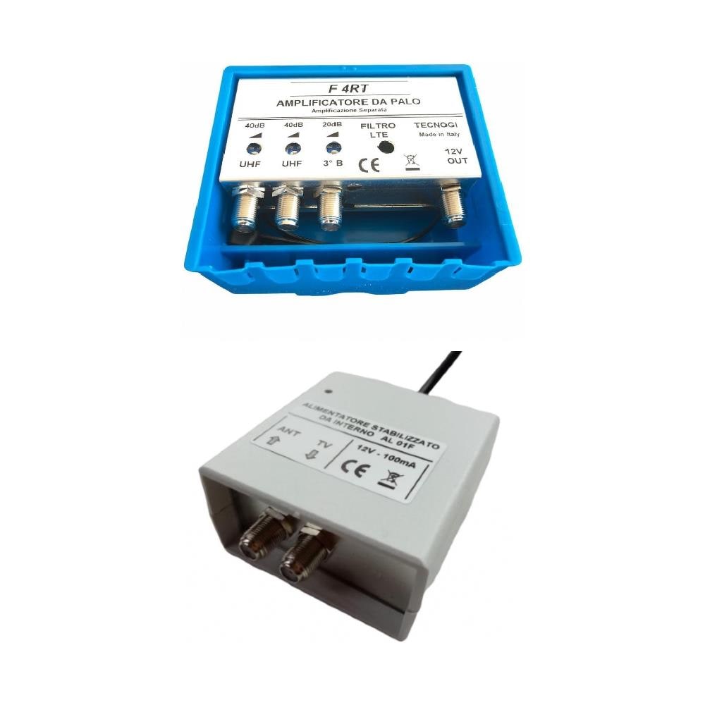 Kit Amplificatore Antenna Tv Da Palo 40 Db + Alimentatore 12v 100 Ma, Filtro Lte / 4g, Regolabile