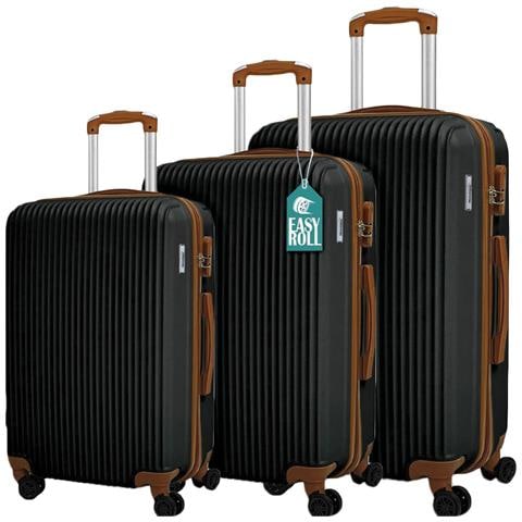 Set 3 Valigie Rigide Con Ruote Easy Roll Trolley Bagaglio A Mano Viaggio Nero