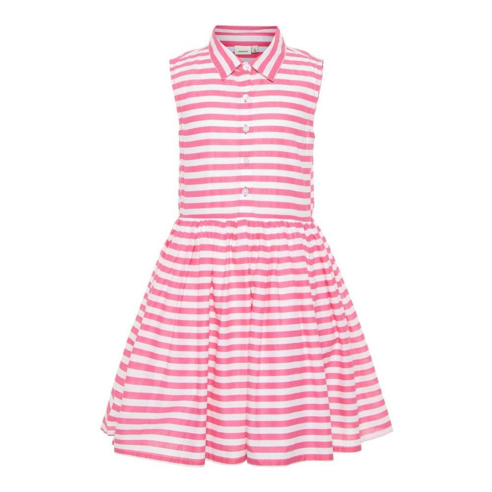 Name it, tra i prodotti presenti nella propria collezione primavera estate 2019, propone il vestito bambina rigato. Senza maniche, l'abito name it si presenta rigato orizzontalmente, con apertura frontale tramite bottoni. Scegli la freschezza con il vestitino rigato name it, realizzato in puro cotone.