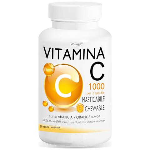 Vitamina C Line@diet - 60 Compresse Masticabili | Gusto Arancia | Ad Alto Dosaggio | Antiossidante