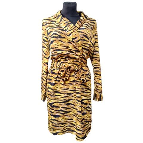 Abito Al Ginocchio Con Cintura Elegante A Strisce Tigrate Giallo S