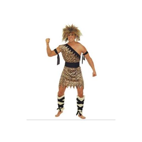 Costume Da Uomo Delle Caverne 'Caveman' In Taglia M Composto Da Tunica, Cintura, Gambali E Fasce Per Braccia E Testa
