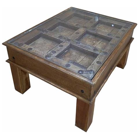 Tavolino Da Caffè In Legno Fatto A Mano 87x67x45h Cm