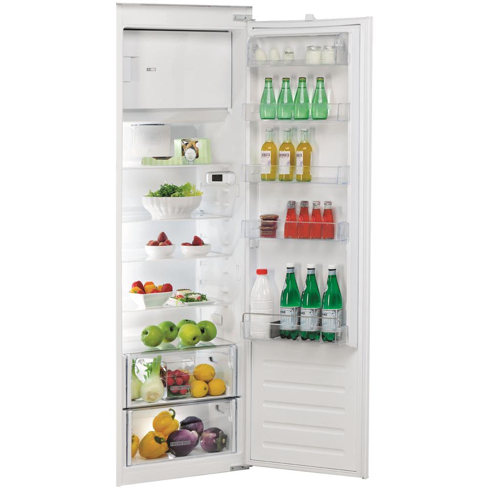 Whirlpool ARG 187402. Posizionamento dell'apparecchio: Da incasso, Colore del prodotto: Bianco, Cerniera porta: Destra. Capacità netta totale: 292 L, Classe climatica: SN-T, Classe emissione rumore: B. Capacità netta frigorifero: 262 L, Tipo di lampada: LED. Posizione del congelatore: Posto in alto, Capacità netta congelatore: 30 L, Capacità di congelamento: 3 kg / 24h. Lunghezza cavo: 2,45 m