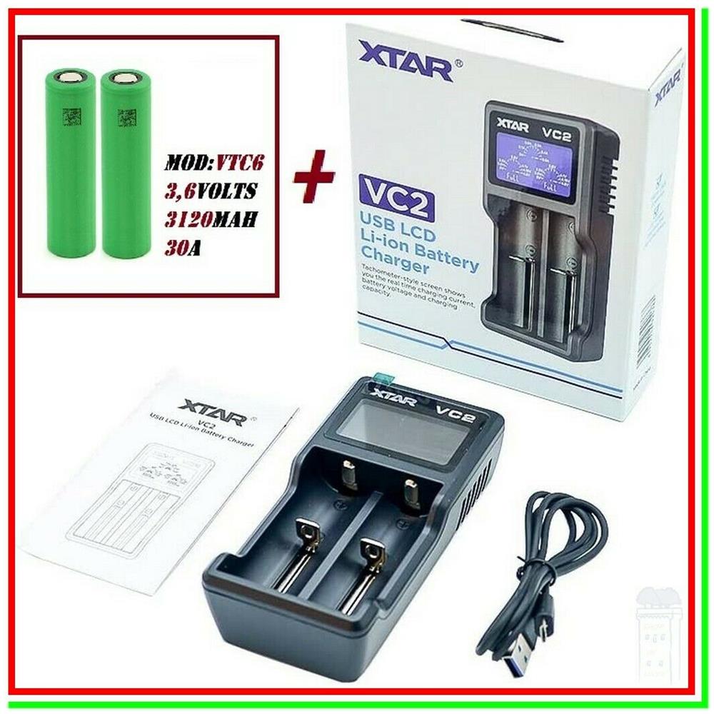 Caricabatterie Xtar Vc2 Usb Lcd + 2 Batterie Pile Ricaricabili Litio Li-ion Lithium 18650 Vtc6 3,6v 3120mah 30a Di Scarico