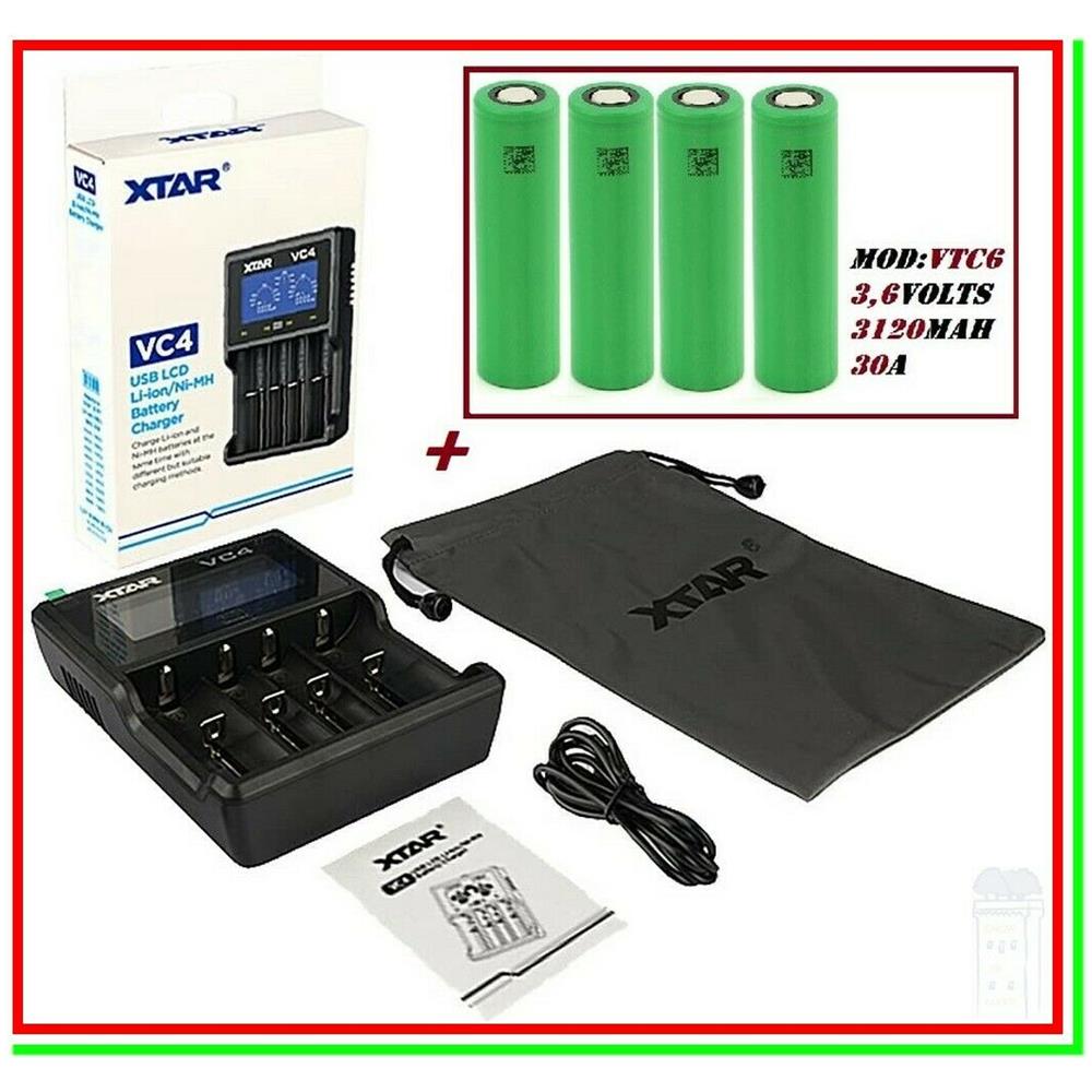Caricabatterie Xtar Vc4 Usb Lcd + 4 Batterie Pile Litio Ricaricabili 18650 Vtc6 3120mah 3,6v 30a Di Scarico