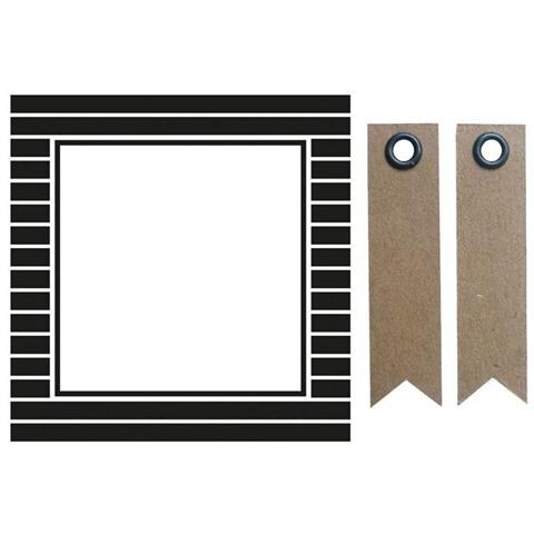 12 Adesivi Quadrati Da 6,3 Cm - Strisce Bianche E Nere + 20 Etichette Kraft Con Gagliardetto