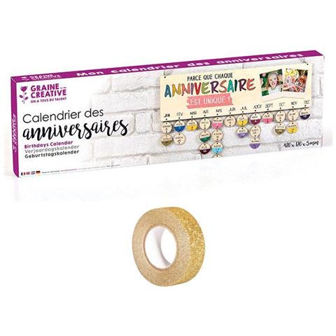 Calendario Compleanni In Legno 40 X 12 Cm + Washi Tape Dorato 5 M