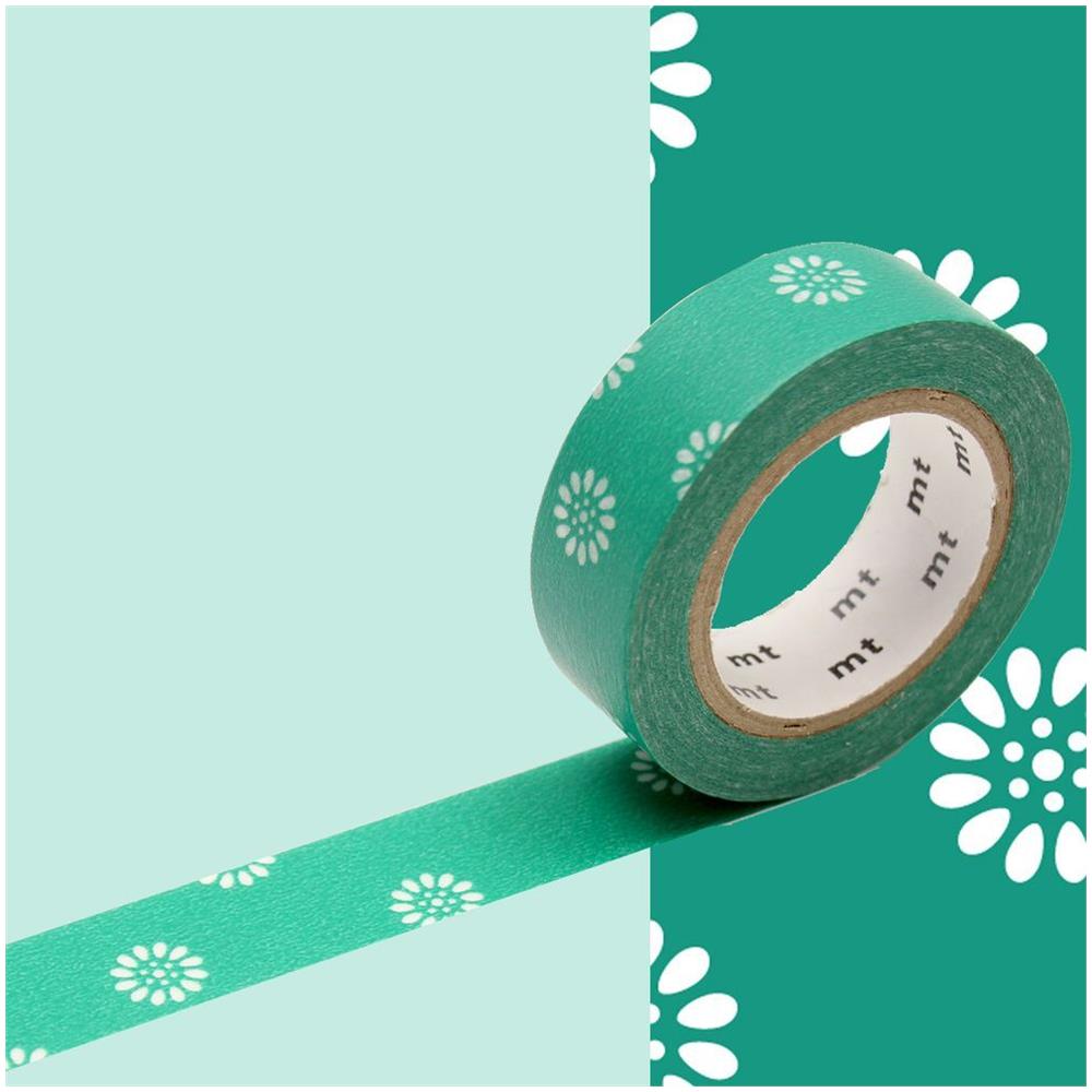 Nastro Adesivo Decorativo Fiori Con Sfondo Verde - 1,5 Cm X 7 M