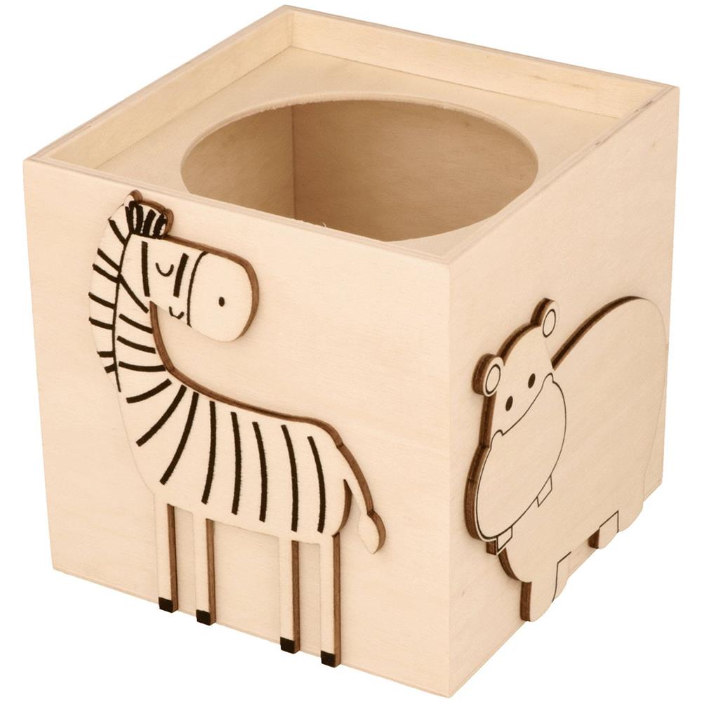Vasetto Di Legno Per Matite Con Animali Della Savana