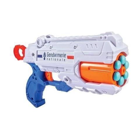Pistola xshot reflex 6 gendarmeria 6 colpi a freccia. Tira fino a 25 metri. Sistema a canna rotante. Viene con 16 frecce in schiuma per il massimo divertimento! Funziona con aria compressa età 8+.