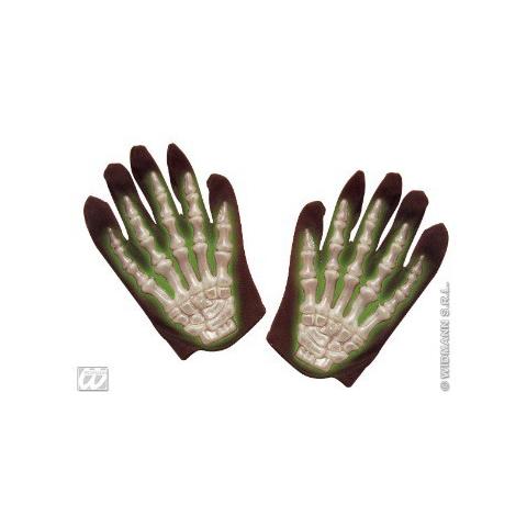 cod. 8408g : 1 paio di guanti scheletro 3d fosforescenti per bambino. taglia unica