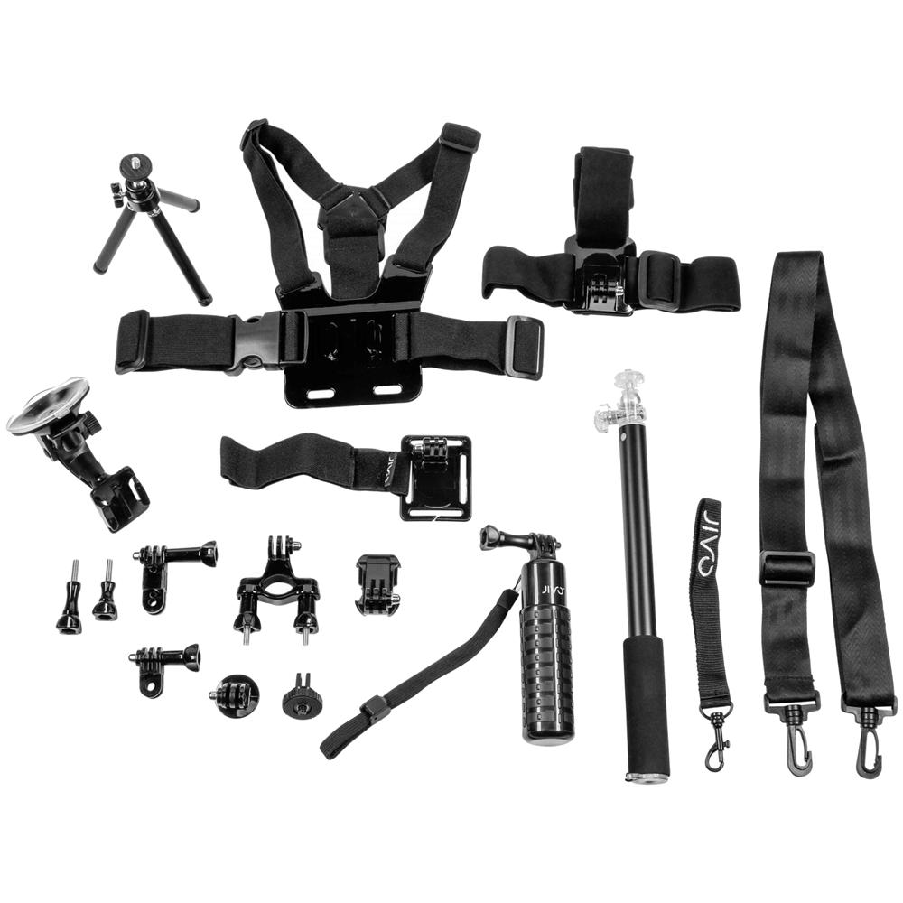 Ottenete tutti gli accessori necessari per la vostra prossima avventura con il kit Jivo JI-1850, Questo kit accessori comprende: un monopiede, un mini treppiede, un supporto a ventosa, un montaggio ad uncino, una cinghia da braccio, supporto per superfici tubolari a 3 vie, set di viti corte e lunghe.