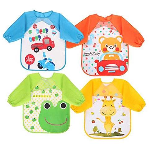 Bavaglini Con Maniche Manica Lunga 4 Pz Impermeabile Bib Unisex Alimentazione Bavaglini Grembiule Per Infantili 6 Mesi A 3 Anni