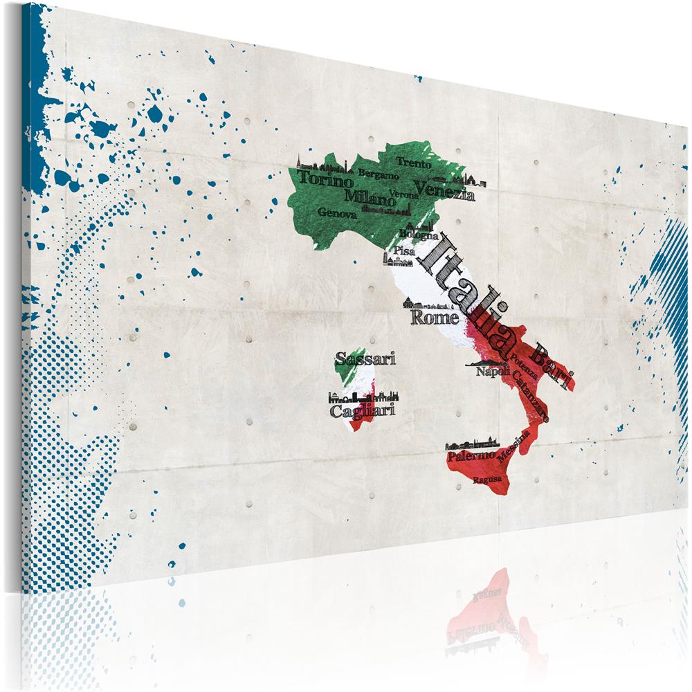 Il quadro di alta qualità ''mappa d'italia'' viene realizzato su tela speciale di fliselina che rende i colori più intensi. è uno dei disegni più originali che puoi acquistare nel nostro negozio. La stampa di altissima qualità tela speciale e alta risoluzione di stampa garantiscono la nitidezza superiore e l'intensitè dei colori. Bordi stampati il Il quadro puè essere appeso anche senza cornice...