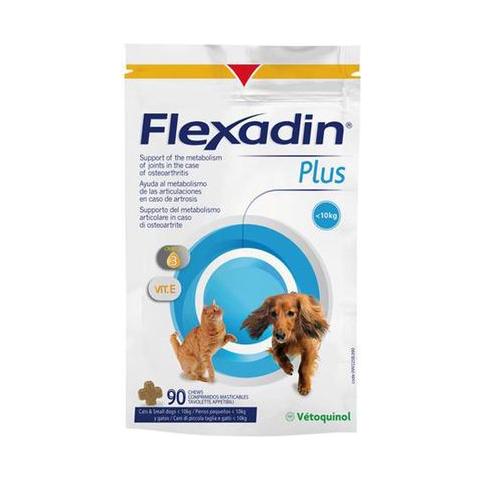 Và©toquinol Flexadin Plus per cani di taglia piccola e gatti è un integratore alimentare dedicato al sostegno delle articolazioni di cani e gatti. Questo particolare prodotto contiene: glucosamina HCl, precursore dei componenti glicosaminoglicani della cartilagine, che stimola la sintesi da parte dei condrociti di collagene, acido ialuronico e solfato di condroitina, condroitin solfato, compone...