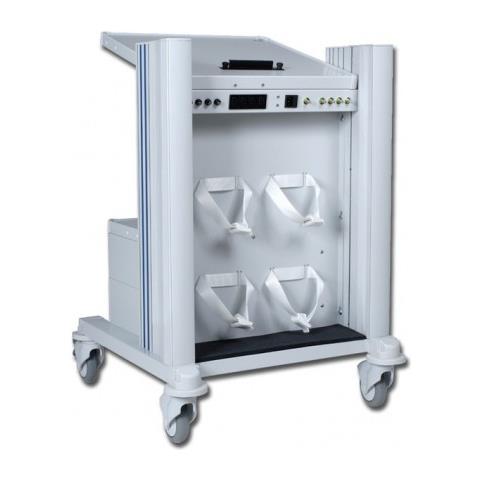 Caratteristiche: carrello progettato per tenere e spostare elettrobisturi (inclusi modelli argon). Nella progettazione dei carrelli ? stata presa particolarmente in considerazione l?ergonomia, per esempio l'altezza di 900 mm con ripiano superiore inclinato permette una facile lettura del display dell'unit?. Il carrello ? dotato di un secondo ripiano con bordi rialzati, due cassetti posti alla b...