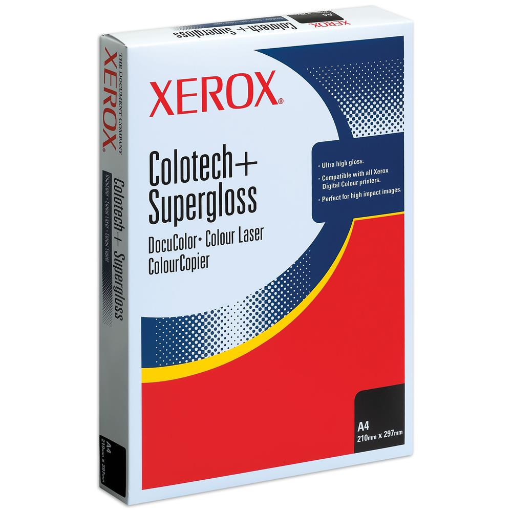 Xerox Colotech+ Supergloss. Tipo rifinitura: Ultra lucida, Colore del prodotto: Bianco, Peso medio: 250 g / m². Quantità per pallett: 256 pezzo (i) , Conforme agli standard: ISO 9706