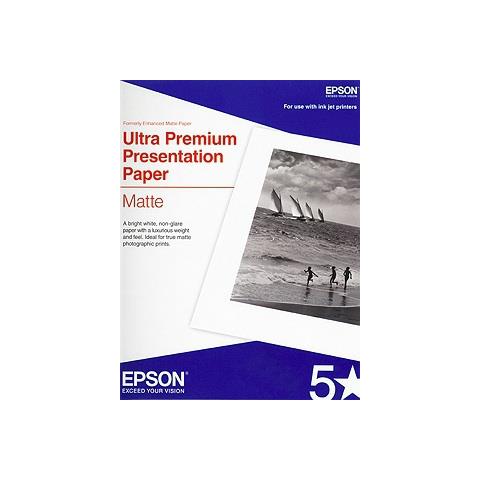 Epson Ultra Premium Presentation Paper Matte. Peso carta: 192 g / m², Spessore materiale di stampa: 10,3 µm, Tipo rifinitura: Opaco. Dimensioni (un foglio) : 13" x 19"