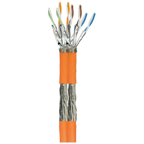 S / FTP: Cavo a coppie intrecciate con treccia generale e schermo su ciascuna coppia Cavo duplex: 2 x (4 x 2 x AWG23) rigido, 2 x 4 coppie schermate singolarmente Permette una protezione addizionale contro le interferenze elettromagnetiche, per assicurare l'integrità di segnale Specifiche tecniche Cavo Cat. 7A 1000 MHz Conduttore: 100% rame Guaina esterna LSFRZH Colore arancione (RAL 2003) Lung...