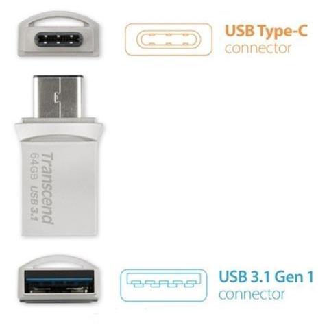 TRANSCEND Chiavetta Usb 64GB JetFlash 890S Interfaccia USB 3.1 (Gen1) / USB 3.1 Type-C OTG Colore Silver