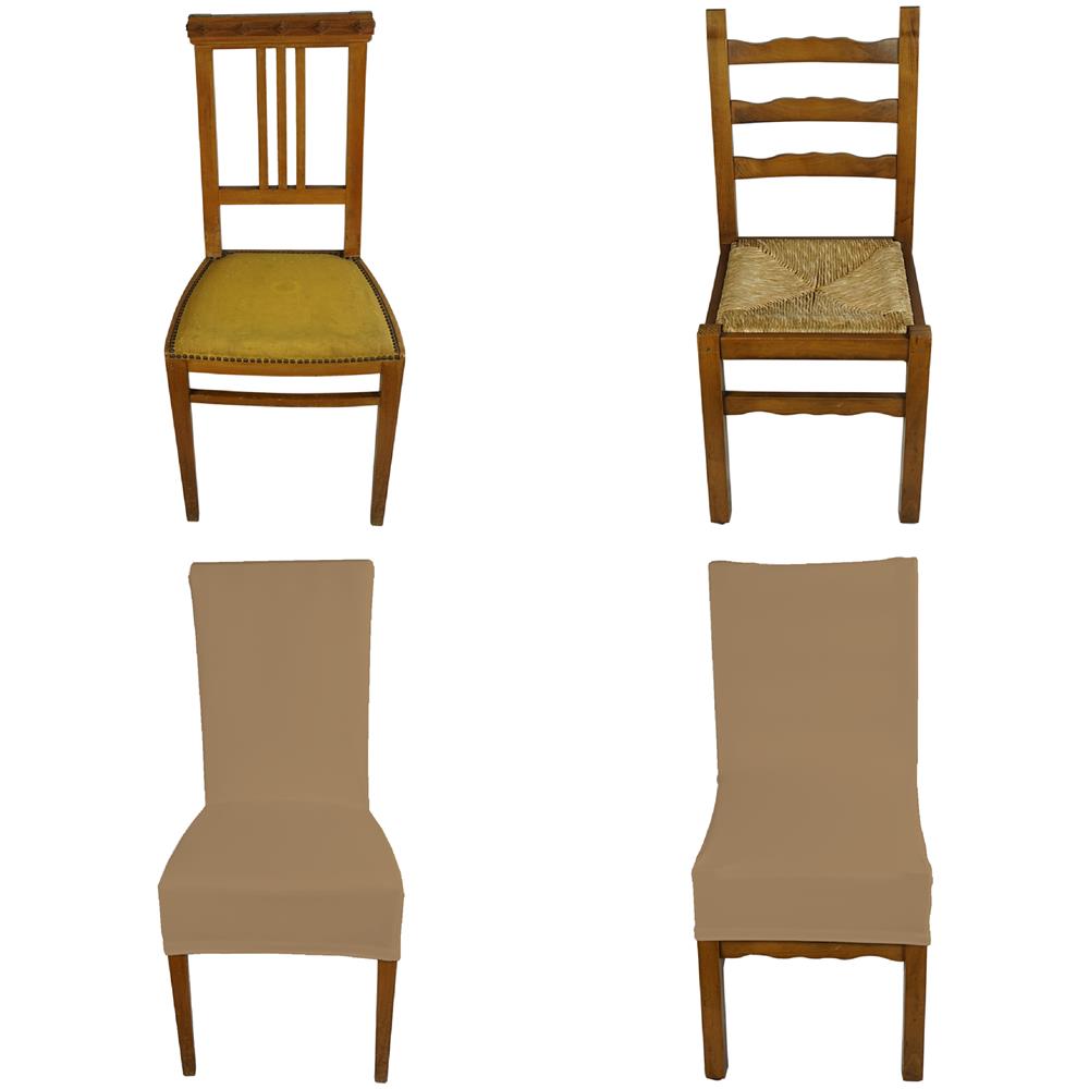 Set 6 vestisedia universale con schienale quadrato Subito Fatto per sedie da ufficio, cucina, sala da pranzo, camera, hotel o ristorante in tessuto super elasticizzato made in Italy Crema