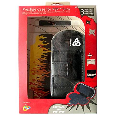 Il kit 3 in 1 comprende: Custodia in similpelle che consente l'accesso a tutti i tasti e all'ingresso UMD. Adesivo trendy per la PSP Slim. Un cordino regolabile per il polso.
