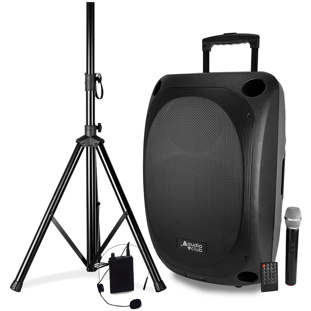 Altoparlante Portatile Pro 15 ""400 / 800w - Audio Club Moov15 - Pc / Usb Bt Fm - Batteria - Microfoni Uhf + Supporto Del Piede