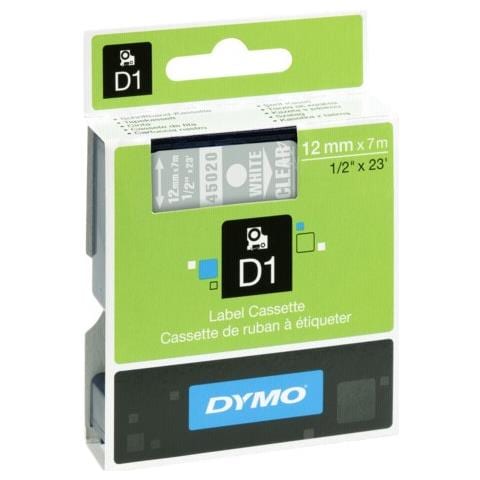 DYMO Nastro in Poliestere per Etichettatrice Modello D1 Formato 12 mm x 7 m Bianco su Trasparente