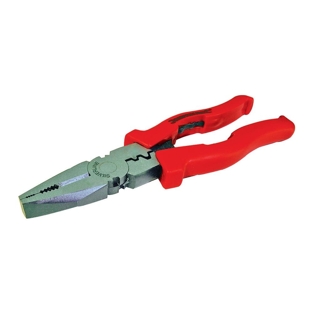 Induction-hardened chrome vanadium steel. Moulded handles with slip guards. Multipurpose tool with wide-grip jaws for crimping and cable stripping.