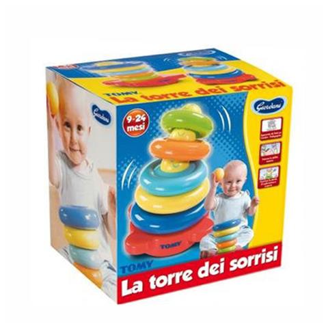 E' un divertente e coloratissimo gioco impilabile. 5 anelli di diversi colori e dimensioni da impilare, dal più grande al più piccolo e viceversa. Il bambino può imparare a riconoscere le faccine presenti su ogni anello, poiché ognuno ha un'espressione diversa. E che sorpresa quando scoprirà la pallina sonaglio nascosta sotto la torre. . . e tanto altro divertimento con la base che dondola! Mar...