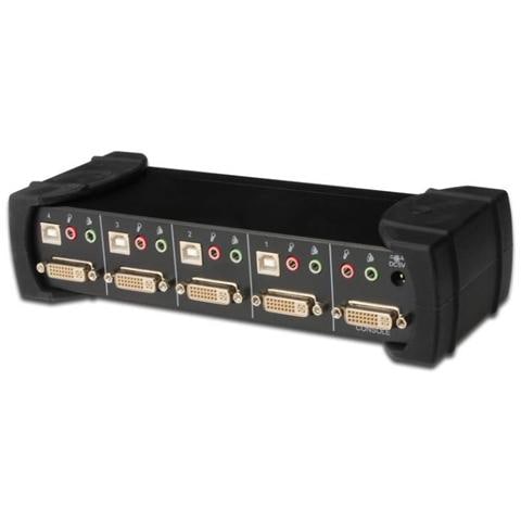 Data Switch per 4 Pc Usb / Dvi con 1 Utente con Monitor DVI, Mouse e Tastiera Usb, Condivisione Audio, Hub 2 Porte Usb 2.0 e 2 Set Cavi Inclusi