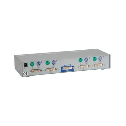 KVM-DVI-Switch 1 User - 4 PCs, PS / 2, PS / 2, Argento, Cablato, 269 x 104 x 45 mm, 4 x 2 x 6pol. MiniDIN 4 x DVI