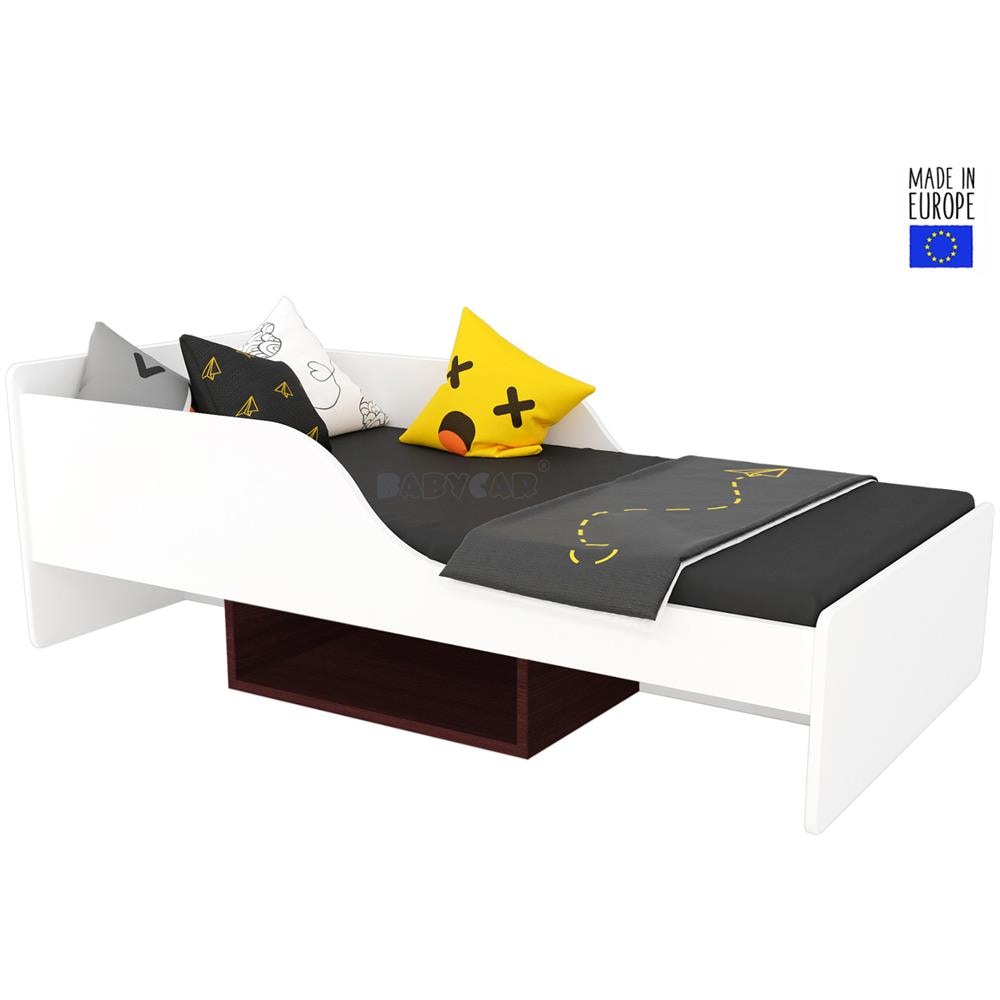 Letto per bambini 70cm x 160cm con materasso in schiuma spesso 6-7 cm e rete. La base del letto è elastica nel sistema flex. dimensioni letto: 76x165cm. Dimensioni materasso: 70x160cm, angoli e bordi protetti da un bordo morbido, le protezioni laterali impediscono ai bambini di cadere durante il sonno, il peso di resistenza del letto è di 110 kg, l'articolo è realizzato interamente con il panne...