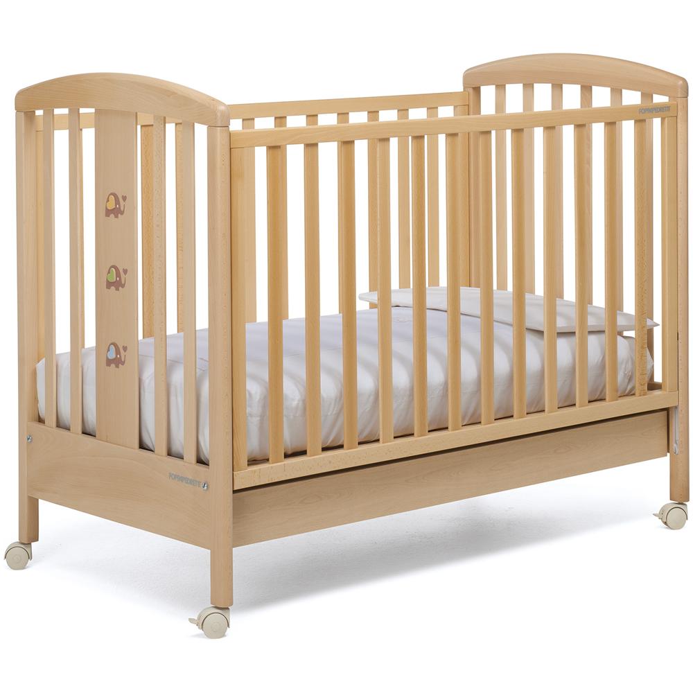 Il lettino Paky, con la testata decorata con elefantini e cuoricini in rilievo, ha una sponda regolabile e una fissa, oltre a un ampio cassetto. Lettino in legno di faggio massiccio verniciato con colori atossici dotato di 1 sponda regolabile e 1 fissa, 4 ruote piroettanti di cui 2 con freno gommate e di ampio cassetto. Rete a doghe. Distanza fra le stecche a normativa europea. Dimensioni: H 10...