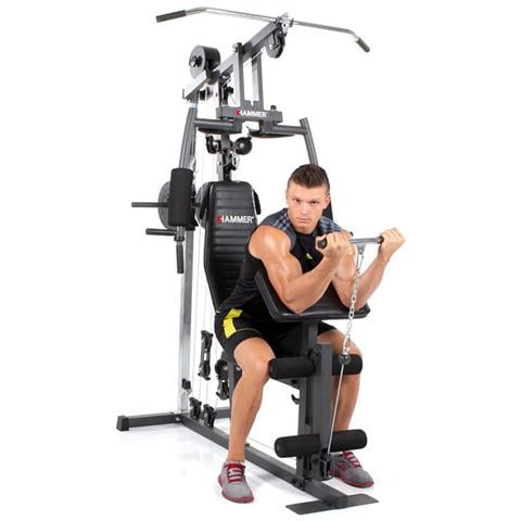 La panca multifuzione Hammer California XP è La panca multifuzione Hammer California XP è un insieme compatto che permette varie esercizi, perfetto per un allenamento a casa con un totale comfort ! Con 60kg di pesi e une mecanismo sofisticato che permette di raddoppiare la resistenza di 120kg. Diversi esercizi come il butterfly, la distensione su panca, flessione gambe, Lat Pull, tutte le parte...