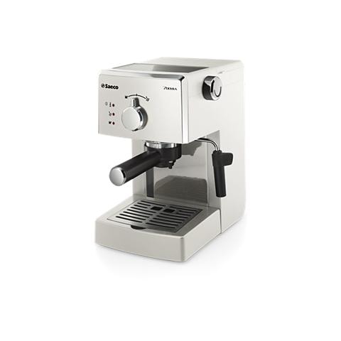 Poemia offre sempre un espresso e uno strato di crema perfetti e il suo portafiltro pressurizzato brevettato. Adatto per caffè macinato e cialde ESE (Easy Serving Espresso) . L'alta pressione della pompa da 15 bar fa sì che il caffè macinato sprigioni tutto il suo aroma. La macchina è a risparmio energetico e si spegne automaticamente dopo 30 minuti. Con il pannarello sarà semplice creare una c...