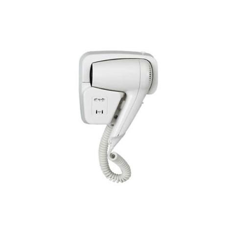 Asciugacapelli da muro con presa rasoio. Il modello è conforme alle norme CE. La potenza è di 1050 W per una velocità dell’aria erogata di 6 m / sec. Semplice l’uso, semplicissima l’installazione hce avviene tramite un pratico supporto a parete. Per le sue caratteristiche estetiche e strutturali, ilm odello è particolarmente idoneo all’uso professionale, ma può essere agevolmente destinato ad u...