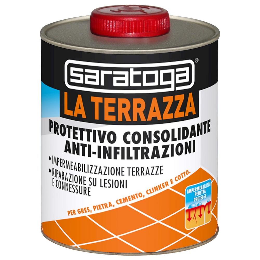 Saratoga La Terrazza è un protettivo consolidante anti-infiltrazioni, ideale per proteggere balconi e terrazze da acqua e umidità e per riparare fessure fino a 1 mm, evitando infiltrazioni negli ambienti sottostanti e rallentando il degrado delle superfici su cui viene applicato, scongiurando così costosi interventi manutentivi. Evita inoltre l¿insorgere di muffe, alghe ed efflorescenze. , Sara...