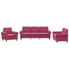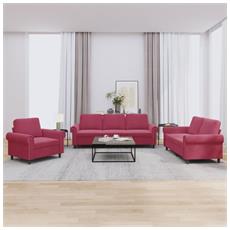 VIDAXL - Set Di Divani 3 Pz Con Cuscini Rosso Vino In Velluto