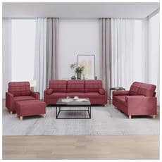 VIDAXL - Set Di Divani 4 Pz Con Cuscini Rosso Vino In Tessuto