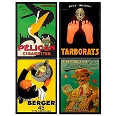 NACNIC - Set Di 4 Stampe Artistiche Vintage Vino Francese Berger 45, 1935, Sigarette Pellican E Russe. Pubblicità D'epoca. Alcolici E Tabacco Senza Cornice A4