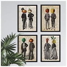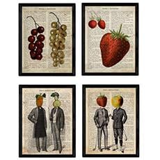 NACNIC - Set Di 4 Stampe Confezione Da Quattro Poster Uomo E Frutta Con Di Frutta E Verdura E Dieta In Spagnolo Poster Nessuna Cornice Senza Cornice A4
