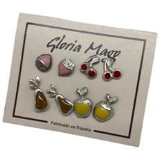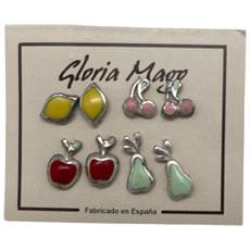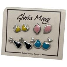 Gloria Mago - Confezione Da 4 Paia Di Orecchini A Forma Di Frutta. Combo 3. Argento 10µ E Lacca Colorata.
