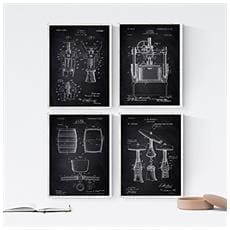 NACNIC - Set Di 4 Stampe Vintage Su Sfondo Nero Brevetti Botte Da Vino Macchinario Vendemmia Brevetti Invenzioni Xix Secolo E Vecchi Brevetti Senza Cornice A4
