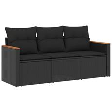 LUSSO CASADINO - Lusso Casadino - Set Divani Da Giardino 3 Pz Con Cuscini In Polyrattan Nero