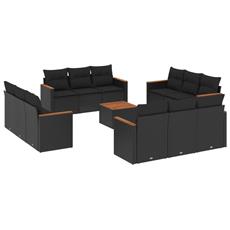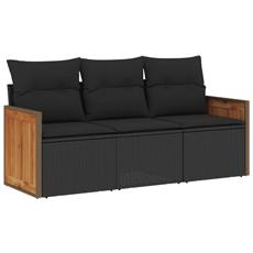 LUSSO CASADINO - Lusso Casadino - Set Divani Da Giardino 3 Pz Con Cuscini In Polyrattan Nero