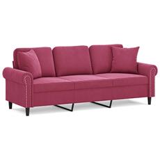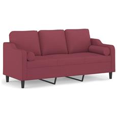VIDAXL - Divano a 3 Posti con Cuscini Rosso Vino 180 cm in Tessuto