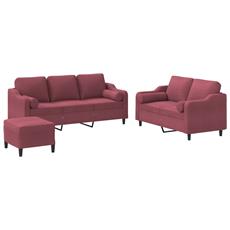 VIDAXL - Set di Divani 3 pz con Cuscini Rosso Vino in Tessuto